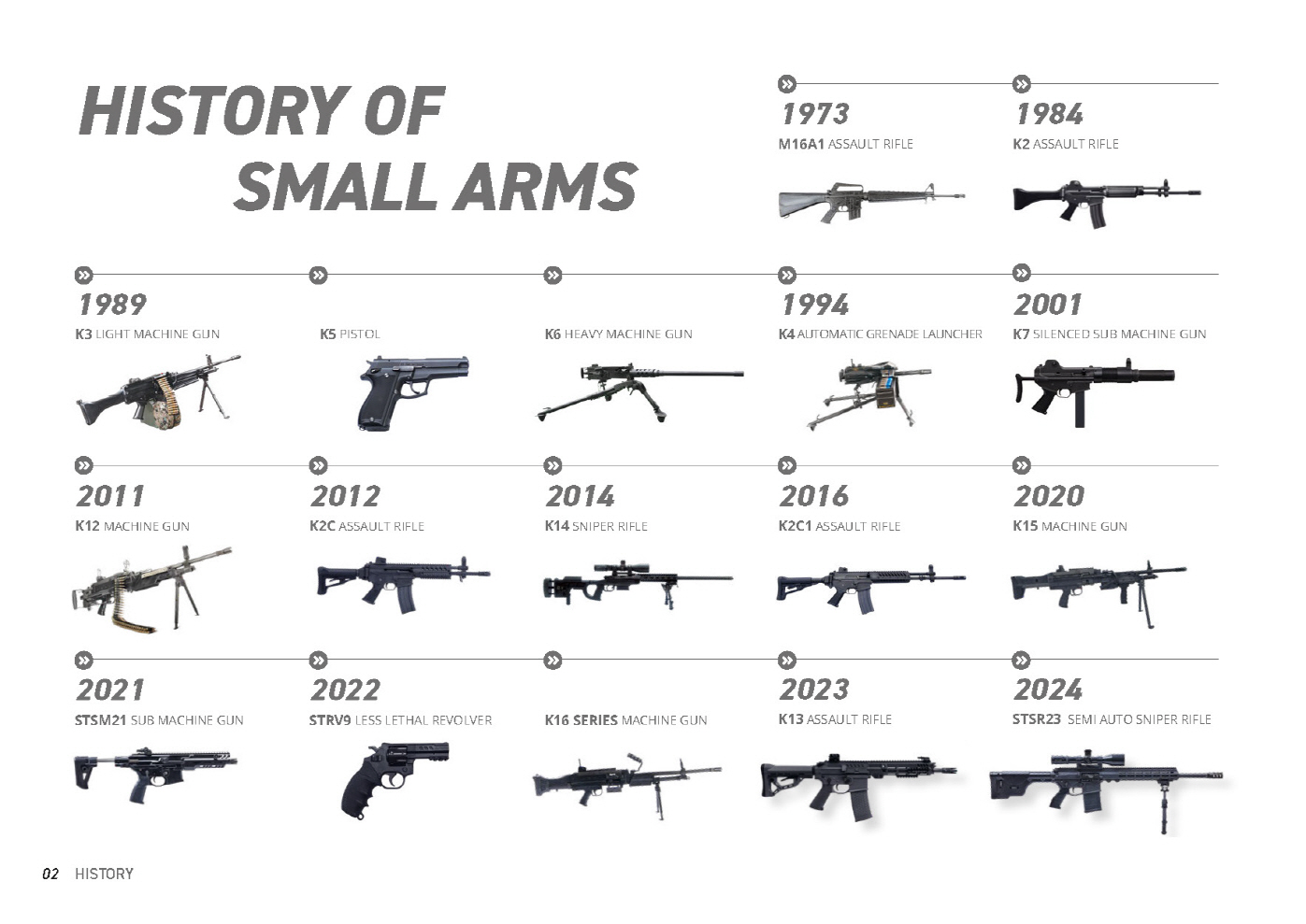 SNT모티브는 최고의 명중률과 파괴력을 자랑하는 최강 보병화기인 ‘K시리즈’를 순수 독자기술개발로 탄생시키며, 자주국방의 1선에서 국가안보의 사명을 다하고 있습니다.
